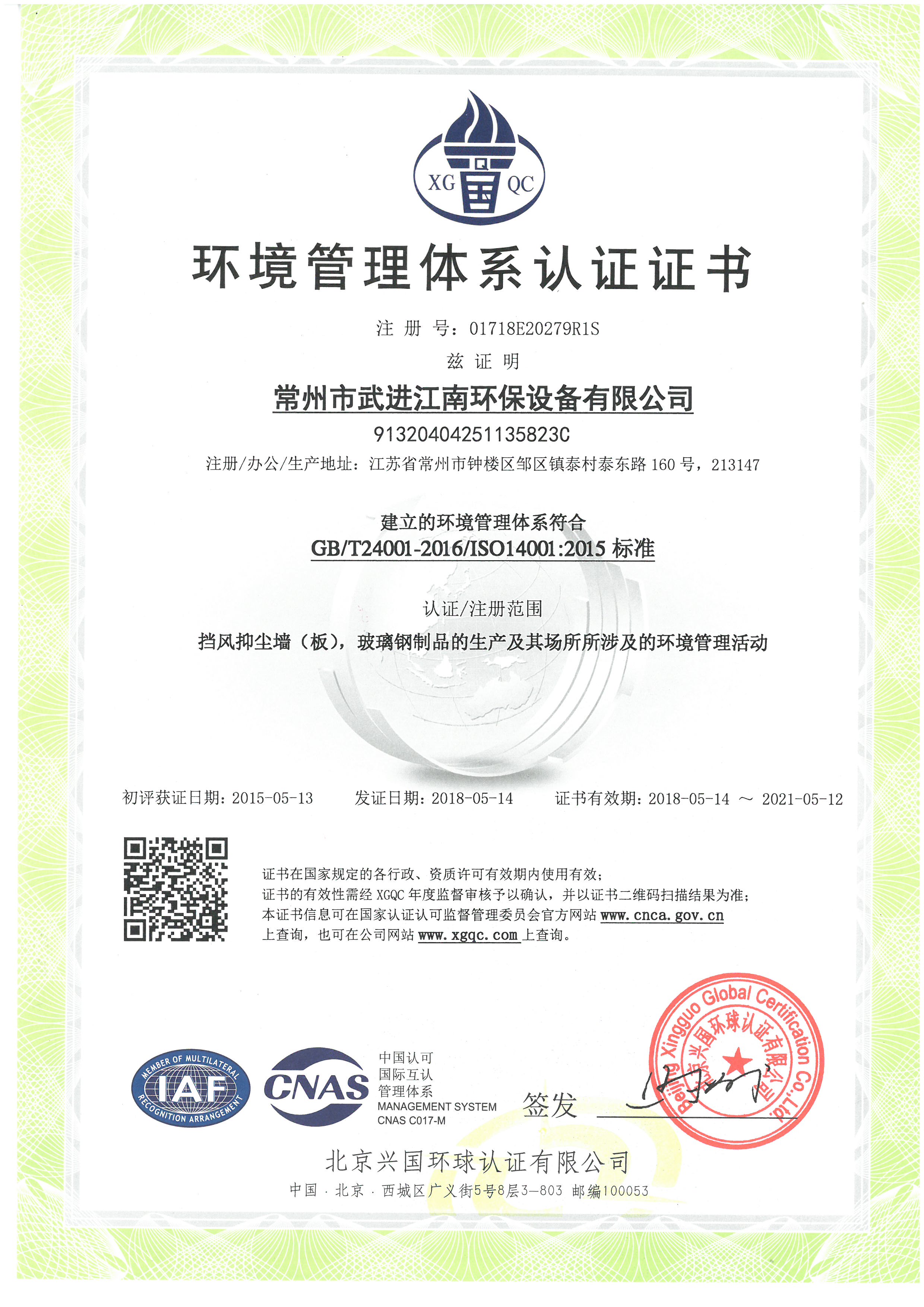 常州市武進江南環保設備有限公司成立于1978年,現占地面積1.5萬平方米,廠房面積1.2萬平方米。公司主要從事揚塵污染治理、玻璃鋼門窗的生產和銷售、焦化廢水處理等環保工程。公司自主研發的常泰牌擋風抑塵墻和擋風抑塵網板獲得國家《實用新型專利》產品認證,是目前針對各種煤場、露天料場、碼頭、堆場等揚塵污染治理先進的抑塵技術,抑塵效果達到90%以上。